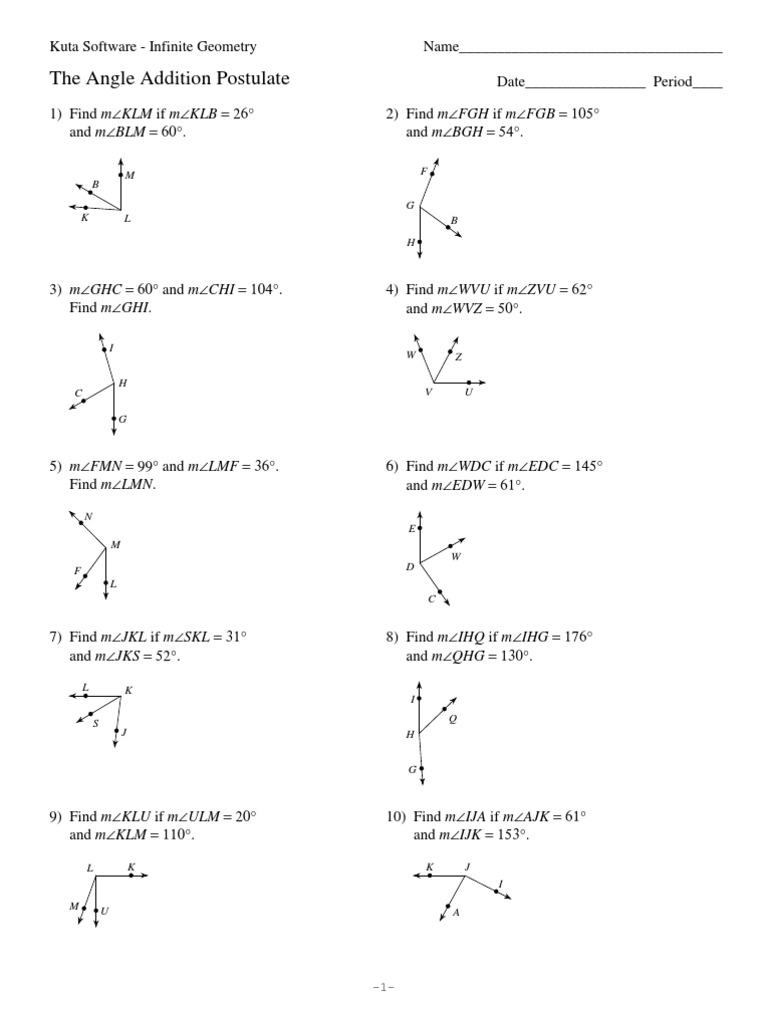 Angle Addition Postulate And Angle Bisector Worksheet Pdf